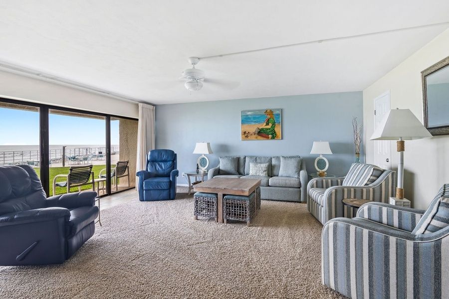 Welcome to Errol by the Sea 126, where barefoot mornings and ocean breezes are just steps away. Managed by Casago New Smyrna Beach, this serene, walk-out condo is located on the coveted no-drive beach — perfect for guests who crave peace, privacy, and the sound of waves as their daily soundtrack. Whether you're sipping coffee on your private patio or heading straight out to the sand, this ground-floor oceanfront unit offers comfort, quiet, and direct beach access that makes every day feel effortless.