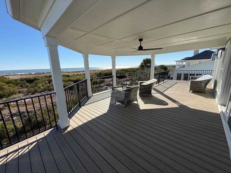 This home is ideal for large family groups and reunions, one of the few homes on the Island that can sleep up to 20 guests in the 17 beds. The spacious living room, dining room, and kitchen area upstairs allows everyone in the group to be together for meals and fun.