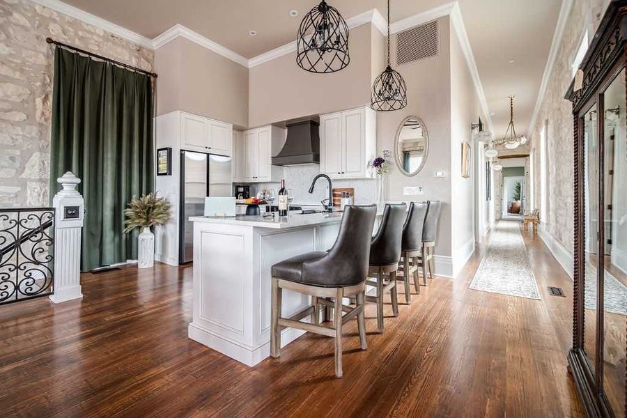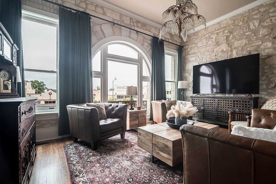 Welcome to your upscale retreat in the heart of downtown, perfectly positioned above the iconic Headquarters Hats store with direct access to Main St. This luxurious 3-bedroom getaway is located on the top floor of a beautifully preserved historic building that once housed the Bank of Fredericksburg. Originally designed with banking operations on the ground floor and the bank owner’s residence above, the building still radiates historic charm while offering all the comforts of modern luxury. Step into a spacious and exquisitely appointed residence where timeless charm meets modern luxury. The main living area offers a stylish and comfortable space to unwind, with large windows that overlook lively Main Street—perfect for relaxing or enjoying a board game with family and friends. The gourmet kitchen is equipped with premium appliances, barstool seating at the counter, and a welcoming dining area ideal for shared meals and memorable conversations. You’ll also enjoy direct access to Main Street via the interior staircase! The primary bedroom features a sumptuous king bed, while the second bedroom offers two luxurious queen beds—each with its own beautifully designed en-suite bathroom complete with elegant walk-in showers. A third, private suite with a separate entrance includes a king-size bed, a full en-suite bathroom with a spacious walk-in shower, and a kitchenette equipped with a full-size refrigerator, microwave, Keurig, and toaster—making it the perfect setup for early risers or guests seeking added privacy. Step outside to the private rooftop deck overlooking Fredericksburg's iconic Main Street. This inviting outdoor space is furnished with plush seating and offers the best views in town. Whether you're sipping Hill Country wine, enjoying a friendly game, or taking in the sights of one of Fredericksburg’s beloved parades, this space is a true highlight. From wine tasting and shopping to celebrating special occasions, this luxurious downtown haven promises an unforgettable stay in the heart of it all. - This property has special local compliance requirements which include a signed rental agreement, ID verification, and a security hold of USD1000 (which is not a traditional security deposit, just a pending transaction). As an optional alternative to the security hold, you may opt in to purchase a non-refundable damage waiver provided by a third-party insurance company. The optional damage waiver is USD62.54 for stays up to 10 nights, with an additional USD1.5 per day for stays longer than 10 nights. Damage waiver purchases are optional. To make this process easy for you, we use a secure and very simple, app-free platform called Happy Guest. It is not an app, and you do not have to sign up for an account - it’s a safe and secure website. It also gives you a guest portal with all the info about the home and all of my favorite local spots. Your guest portal includes advertisements with third-party upgrades that you may want to enhance your stay. These upgrades are optional and include: Late Checkout Request - USD54.13 Early Check In Request - USD59.4 Private Chef - USD121 Fridge Stock - USD378.88 Fridge Stock - USD433 Embark on a Journey Through Time: Explore the past like never before! - USD32.48 Exclusive Wine Tour - USD199 Stay Texas Concierge - USD129.90 Car/Walking/Cycling/Rideshare or Taxi, if available - You only have access to the rooftop deck, no gravel roof access is permitted. - No open flames permitted on the deck. - Please read instructions posted by the door leading to the deck about occupancy and weight limit for deck use. Thank you for choosing Stay Texas! Important details for your upcoming stay: 1. Check-in instructions, house rules, and property addresses will be available via the Happy guest link 2. Not all homes have cable; consider setting up a streaming account in advance. 3. Our team is committed to assisting you, though occasional check-in delays may occur during peak periods. 4. WiFi is available in all homes, but uninterrupted service is not guaranteed. No refunds or rate adjustments will be made for mechanical failures, or discontinued or interrupted services that occur during your stay. 5. A USD500 fine will be imposed for any evidence of smoking, confetti, vomit residues, or glitter. 6. Set the A/C no lower than 72 degrees to prevent freezing and system issues; no refunds for low-temperature-related A/C problems. 7. We will provide a two-day supply of start-up sundries, including dish soap, sponge, paper towels, toilet paper, bath soap, shampoo, conditioner, and hand lotion. Guests will need to purchase additional items from a local store or bring them with them. Missing supplies must be reported to our Customer Hospitality team within one hour of arrival. 8. Pets are allowed only in designated pet-friendly units, subject to an extra fee in addition to the nightly rate. Please verify whether pets are permitted in the unit you intend to rent. Stay Texas has engaged VacayHome to ensure this listing contains all the information you need and that it is easy for you to book via search engines & online channels. VacayHome is connected directly to the property management system used by Stay Texas which ensures that availability & rates are up-to-date & accurate. When you book, VacayHome processes payment on behalf of Stay Texas and a charge will appear on your statement as "VacayHome". VacayHome will send you a confirmation e-mail that contains all the information you need to prepare for your vacation including arrival instructions. VacayHome has a 24 x 7 team to assist you with any questions or concerns you may have prior to arrival. To access VacayHome, obtain the customer support telephone number or read FAQs, please click on the links at the bottom of this page.