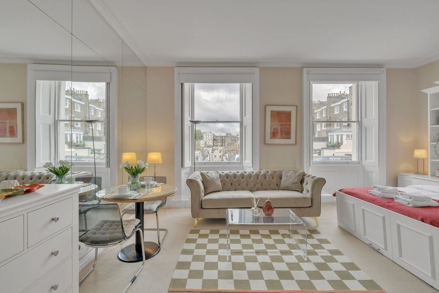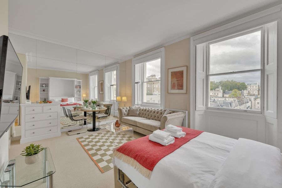 • Smart TV and free WiFi • Central heating and portable AC unit (summer use) • Fully equipped kitchenette • Essentials provided (no condiments, sugar, or tea) • Sleeps 2 guests • Smart self check-in and CCTV 24 • Apartment located on the third floor walk up Tucked away on the third floor of a charming Georgian townhouse in beautiful Belgravia, this bright and airy studio is a perfect base for two guests. While there’s no lift access, the walk up is worth it for the peaceful setting and natural light that fills the space. The studio features wooden floors, a comfortable open-plan layout, and a fully equipped kitchen with integrated appliances, great for preparing simple meals at home. The modern en suite bathroom adds a touch of comfort, making it easy to unwind after a day exploring London. To ensure a smooth and secure check-in process, we use a smart lock system. To access your check-in instructions, please complete the ID verification process. This verification is necessary to guarantee the safety and security of all our guests. Please ensure that the registration and ID verification are completed at least 24 hours before your arrival. For last-minute bookings, we will expedite the process as much as possible to accommodate your needs. Once your ID is verified, you will receive detailed instructions for entering the property using the smart lock. Luggage: If you are arriving before 3 pm, kindly ask us about the possibility of dropping off your bags before check-in (subject to availability). Alternatively, we highly recommend Stasher, which provides luggage storage around London at the best rate/hour. Parking: We recommend these offsite options: 1. JustPark to find flexible and cheap parking spaces available around you. 2. NCP Knightsbridge - Cadogan Place, Royal Borough of Kensington and Chelsea, SW1X 9SA. Rate £49.95 Transport • Sloane Square Underground station (District and Circle line): 7min walk • Victoria Underground station: 8 min walking distance (Victoria line, District and Circle lines) • Multiple bus stops to get around London in a few minutes. Lyall Street is located in the heart of Belgravia which allows quick access to all local amenities of Sloane Street and Knightsbridge including restaurants (Harry’s Dolce Vita and Hawksmoor), bars, cafes (Caffe Concerto and Feya), boutique shops, shopping outlets and attractions including Harrods, Knightsbridge, Belgrave Square, Buckingham Palace, Victoria & Albert Museum, Mayfair, Hyde Park, Oxford Street. Today, Belgravia reflects its historical significance as a meticulously planned aristocratic residential area during the early 19th century. 7min walk to Sloane Square underground station (District and Circle line) 8min walking distance from Victoria underground station is (Victoria line, District and Circle lines) Multiple bus stops to get around London in a few minutes.. My City Residences has engaged VacayHome to ensure this listing contains all the information you need and that it is easy for you to book via search engines & online channels. VacayHome is connected directly to the property management system used by My City Residences which ensures that availability & rates are up-to-date & accurate. When you book, VacayHome processes payment on behalf of My City Residences and a charge will appear on your statement as "VacayHome". VacayHome will send you a confirmation e-mail that contains all the information you need to prepare for your vacation including arrival instructions. VacayHome has a 24 x 7 team to assist you with any questions or concerns you may have prior to arrival. To access VacayHome, obtain the customer support telephone number or read FAQs, please click on the links at the bottom of this page.