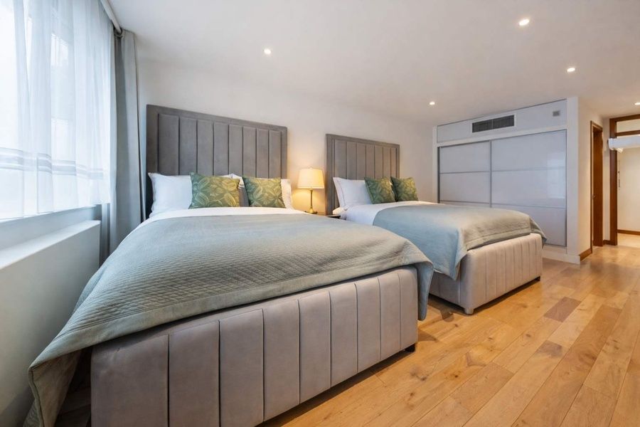Located in vibrant Marylebone, this comfortable and modern apartment is perfect for families or friends. It features two spacious bedrooms: a master with a king-size bed and ensuite, and a second bedroom with two small double beds.