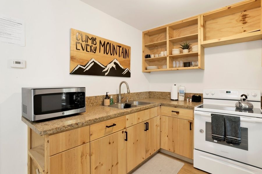 Step outside from the spacious second bedroom living room area to enjoy the private fenced backyard, complete with a cute sundeck and outdoor patio furnishings. You will love relaxing here under the pines after a fun day of adventures on the mountain. Enjoy flat year-round parking and a convenient yet quiet and relaxing location here at Sugar Bear Chalet- your new home away from home awaits!
