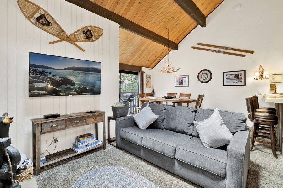 Nestled just steps from the base of Snow Summit, this charming and spacious 2-bedroom, 2-bath condo offers the perfect mountain getaway for families and friends. Boasting an open-concept living area featuring a toasty fireplace and living area, fully equipped kitchen, and dining space – ideal for relaxing after a day on the slopes or trails. This chalet is perfect for any season with direct access to ski and bike park lifts and local hiking trails- come experience your home away from home at Big Bear today!