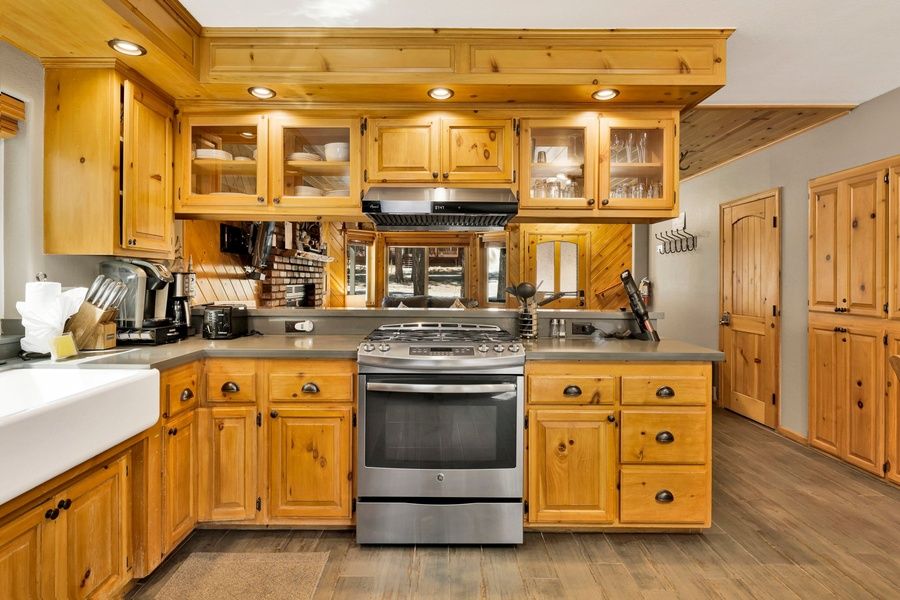 Step inside where you are greeted with a spacious open floor plan including an equipped kitchen and dining area that opens to a cozy living room with a toasty fireplace. Wood accents, mountain charm, and comfortable furnishings combine to provide the perfect balance of comfort and serenity here at Golden West Cottage. Stainless steel appliances, a dining area with a view, and fully stocked cabinets ensure you can prepare and enjoy home cooked meals here together with ease. Comfortable and spacious sleeping quarters and bathrooms ensure a restful night of sleep, a separate laundry area with a washer and dryer adds to the convenience, while the fenced private yard offers a great space to enjoy the outdoors.