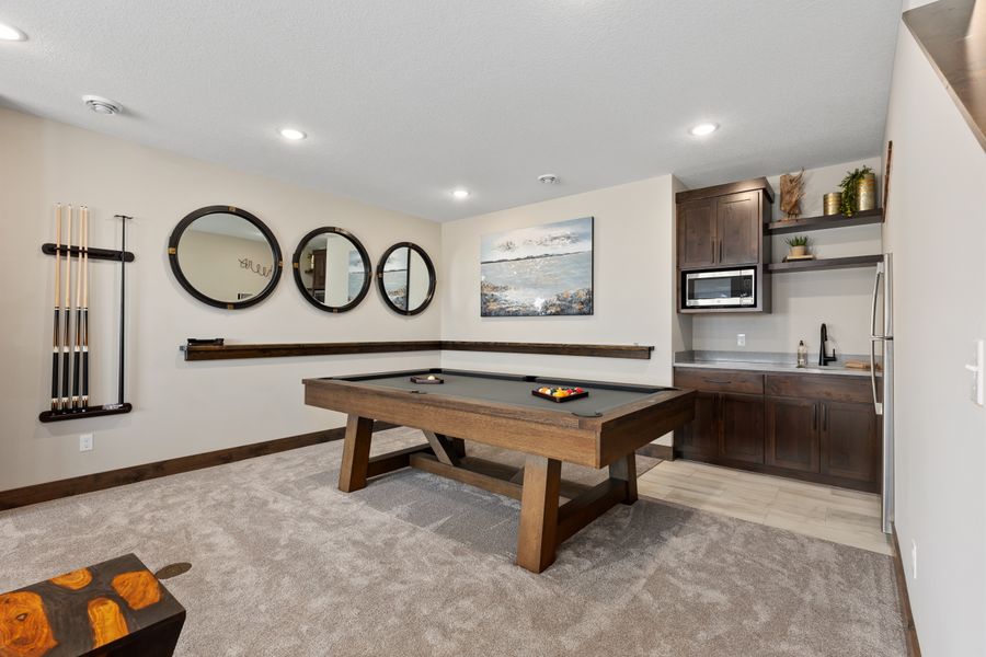 Read for entertainment? A spacious family room is located on the lower level, including a game room with a card and pool table. Snuggle up with your favorite movie or watch your favorite sports team in the living area with many different seating arrangements, a flat-screen TV, and a fireplace. There is plenty of room to spread out and relax. You will also find a bedroom with 2 bunks and a double guest suite with two king beds and a private connecting bathroom. The lower level has a common bathroom, washer, and dryer.