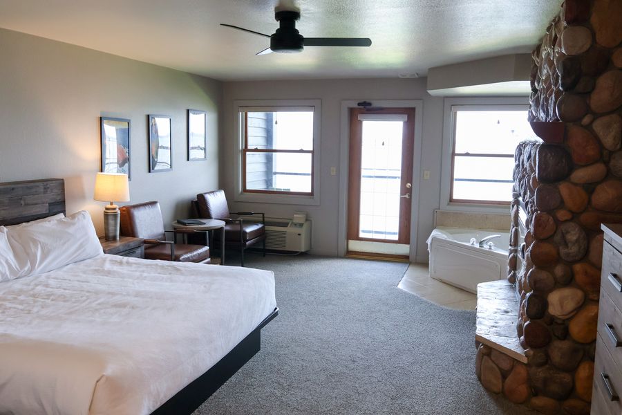 Overlooking beautiful Gull Lake, this lakeside room in the main lodge at Quarterdeck Resort can sleep up to 2 people and features a king bed, a fieldstone gas fireplace, Jacuzzi tub, balcony, free Wi-Fi, AC/Heat, flat screen tv, bathroom, kitchenette with a small refrigerator, toaster, coffee maker, microwave, sink counter and basic dishes. Quarterdeck Resort is for you whether you want to be at the heart of the action or searching for solitude. We have just the place if you’re a couple seeking retreat and seclusion or a family looking for fun and adventure. We will help you curate your perfect Minnesota lake adventure. Staying at Quarterdeck Resort means relaxing in Northern Minnesota’s comfortable ambiance- indoors and outdoors. We make it seamless with incredible sunrise and star views, balconies, bonfires, and the water’s edge only steps from your door. Leisure is continuous inside and out, providing guests with unmatched access to amenities, seasonal activities, and attractions at the resort and in the Brainerd Lakes Area. AMENITIES / ACTIVITIES: Quarterdeck Resort offers all the amenities needed for comfort and fun. Gull Lake is the centerpiece, boasting nearly 10,000 acres of water perfect for boating and water sports, with almost 40 miles of shoreline to explore. Exciting News! Introducing Club Quarterdeck at QD Social - now open! Play, splash, sweat, and lounge at QD Social. Enjoy the extras at Quarterdeck Resort in our brand-new social and entertainment area. Jump in the outdoor heated pool after a round of exercise in our Fitness Room with two Life Fitness Treadmills, Life Fitness Elliptical, and two TVs plus free weights with bench coming soon. Experience the health benefits of the outdoor sauna and relax in the comfy lounge chairs by the outdoor fire tables or indoor fireplace. Play vintage games, including the world’s largest Pac-Man, or watch your favorite game on one of the six large-screen TVs. Hang out on the bar stools drinking adult or family-friendly beverages and eating pizza or snacks from the cafe. Come play at S’more Fun Way! (Please note that pool and game room hours may vary depending on dates!) Boat Slips are available to reserve directly with the resort front desk for $50 per night. The property has boat rentals and snowmobiles available for rent on site as well! Please inquire with the front desk directly for rates and availability. Take a swing at any of the area’s award-winning golf courses. Hit the trails for hiking, horseback riding, skiing, snowmobiling, or borrow one of our complimentary E-Bikes. There’s a world of adventure and family fun waiting at Quarterdeck. Not to mention the local attractions in Brainerd Lakes Area! MN Snowmobiling! Snowmobiles are now available for rent at Quarterdeck! We’re excited to offer 550 Polaris LXT 144 2-ups for rent at Quarterdeck this Winter! We’ll have 4 available, so act fast to reserve yours! Ice Fishing on Gull Lake - With just under 10,000 acres of frozen lake surface, Gull Lake will surely provide the premier ice fishing experience you seek. Drill some holes and set the tip-ups. Bring your portable fish house, and we’ll provide the plowed lake access. Quarterdeck guests can arrange to rent a heated fish house upon request. There are also multiple fishing guides in the area to schedule a guided fishing tour. Bring the kids and leave your cares at home. We understand that vacations mean spending quality time with your family. That’s why Quarterdeck provides fun for every age. Just off our docks, your kids will be thrilled to catch bluegills and sunfish just as quickly as they can cast out. Take advantage of the many trails offered by the nearby Pillsbury State Forest. Even if the kids are too young to appreciate the beauty of the scenic surroundings, they’ll be sure to enjoy spotting wildlife and catching glimpses of birds like bald eagles, blue heron, and sandhill cranes. Located within walking distance of your accommodations and at the center of the Quarterdeck Resort area is the newly enhanced Quarterdeck Beach Club Grill. Enjoy some of the best views of Gull Lake, eat, drink, listen to live music, watch a game, and have fun. GENERAL INFORMATION: Check in time: 4pm-7pm Check out time: 11am Please note that check in will be done at the Quarterdeck Resort front desk and our front desk/lobby operates on staffed hours and is not open 24/7. If you book a stay with us and you plan to be a late arrival, later than 7pm, you will need to contact the Quarterdeck front desk directly to arrange check in instructions. Pet Fee: 50$ per dog, per night - (Dogs Only.) - Must notify at the time of booking if you will be bringing a dog with you so we can ensure you are placed in a pet friendly unit. Quarterdeck Resort has engaged VacayHome to ensure this listing contains all the information you need and that it is easy for you to book via search engines & online channels. VacayHome is connected directly to the property management system used by Quarterdeck Resort which ensures that availability & rates are up-to-date & accurate. When you book, VacayHome processes payment on behalf of Quarterdeck Resort and a charge will appear on your statement as "VacayHome". VacayHome will send you a confirmation e-mail that contains all the information you need to prepare for your vacation including arrival instructions. VacayHome has a 24 x 7 team to assist you with any questions or concerns you may have prior to arrival. To access VacayHome, obtain the customer support telephone number or read FAQs, please click on the links at the bottom of this page.