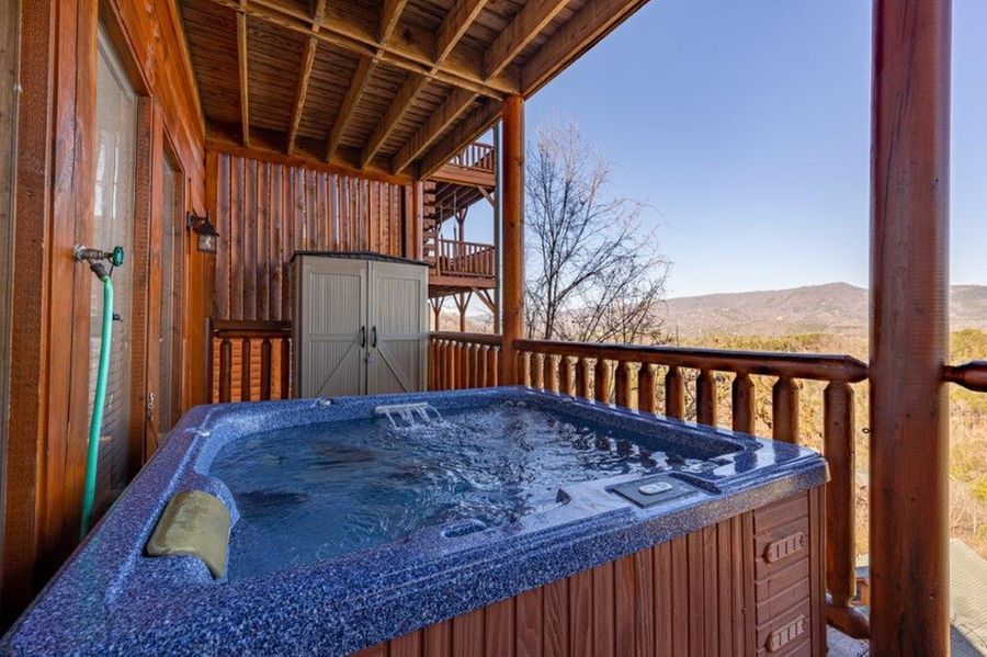 The Upper Level features an open loft with two full-over-full bunk beds, a full bathroom, a sitting area with an electric fireplace, a large flat-screen HDTV, a Foosball game for extra entertainment, and access to a private deck with rockers where you can sit back and enjoy the weather.