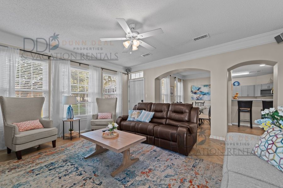 Located in the exclusive Villas at Legacy community, this beautifully appointed unit comfortably accommodates your group with a king bed, queen bed, two twin beds, and a sleeper sofa. Enjoy the added bonus of a private garage, ideal for beach gear, golf clubs, or your vehicle. Whether you're here for a romantic getaway, a family vacation, or a weekend of adventure, Legacy Villa 1701 provides the ideal home base.