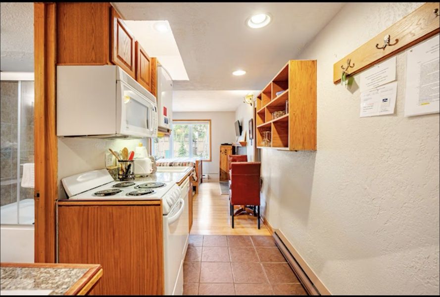 Located on Four O'clock Rd. you can easily walk (approx. 100 yards) to the Snowflake chairlift giving you the option to ski in for lunch and avoid taking the shuttle to and from the parking lots at the end of the day. The unit comes with one parking space on the premises and laundry facility.