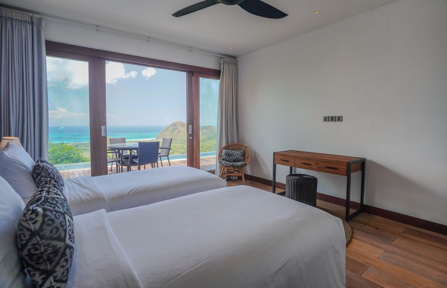 5-bedroom luxury villa with 5 ensuite bathrooms, private infinity pool, ocean views, daily breakfast and housekeeping. 4 of the bedroom features king bed, the last bedroom with flexible bedding option. Open-plan living, dining areas, kitchen and outdoor entertainment spaces making this villa the ultimate family retreat, just minutes from Selong Belanak Beach with complimentary shuttle service.