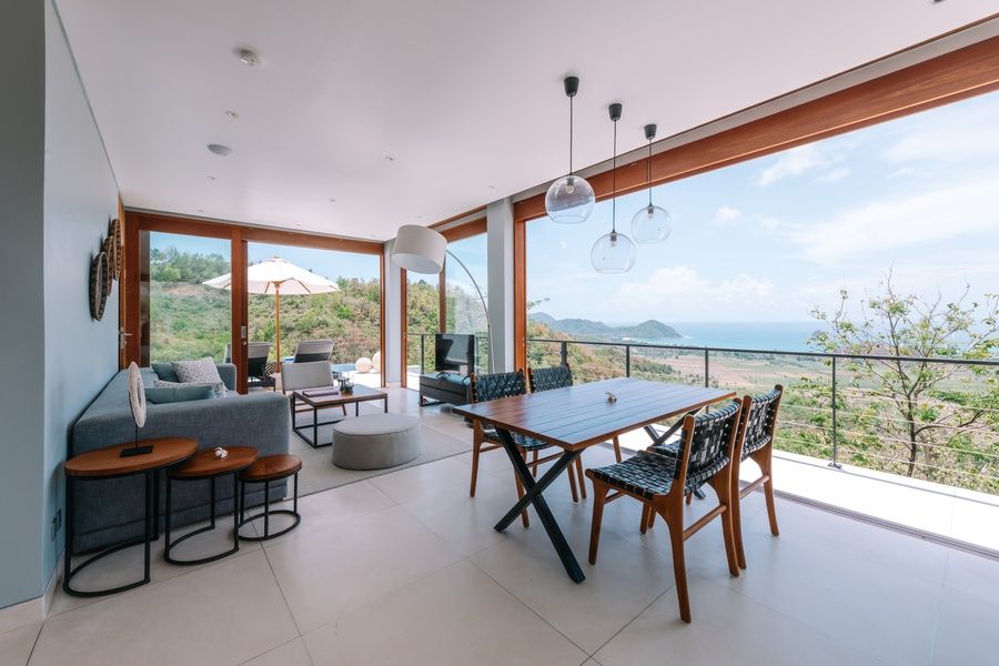 This unique two-bedroom villa is built into the hillside with jaw-dropping ocean views, spread over three floors. It’s the ideal holiday villa for families or groups of friends of 4 people.