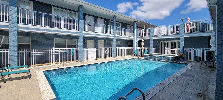 The quiet Cypress Cove condo complex is right on the beachfront between Biloxi and Gulfport. Only 6 minutes to Keesler Air Force Base, and close to shopping, casinos, and excellent dining and night-life! The beach is directly across the street with miles of sidewalk for morning strolls. The beautiful pool area is right outside your front door as well.