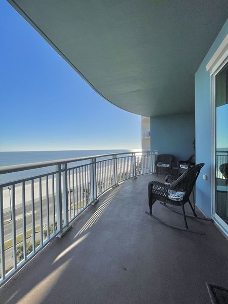 Enjoy picturesque views of the Gulf of Mexico from your private balcony on the 8th floor of Legacy Tower. This condo features comfortable couches and charming beach decor, creating a laid-back atmosphere. You'll have a fully equipped kitchen with granite countertops and a breakfast bar, a standalone wet bar, plus a dishwasher, cooking appliances and coffee maker to make you feel at home. Practical amenities include an in-unit washer and dryer, private high-speed internet, and TVs in the living room and bedrooms.