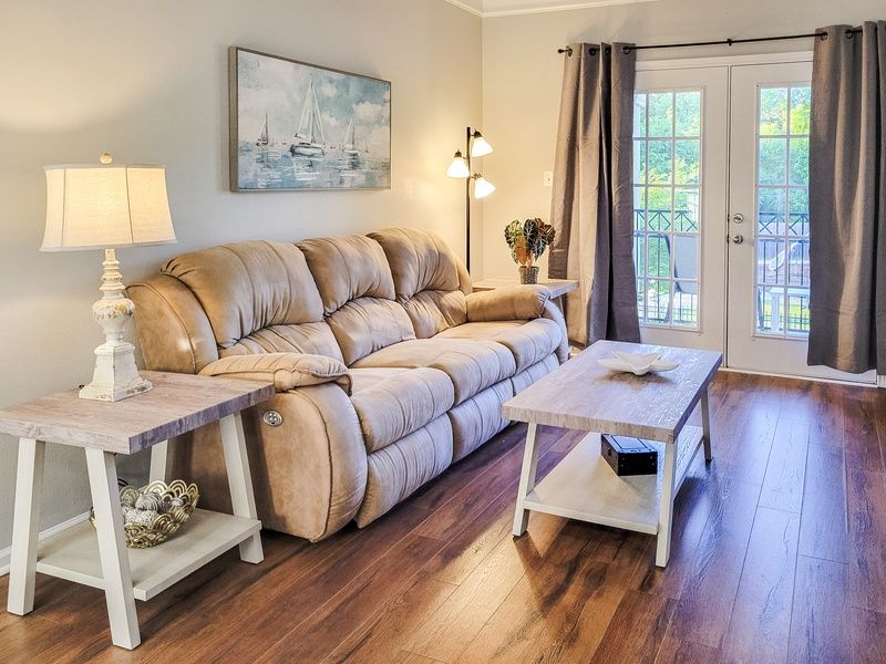 Enjoy the simplicity of this 1 bedroom 1 bath villa with a private garage. Take in the peaceful surroundings of the Legacy Villas neighborhood from your private balcony on the 2nd floor. Practical amenities include in-unit laundry, high-speed internet, and flat-screen TVs.