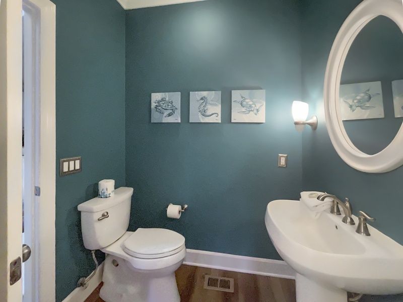 The first-floor primary suite offers a king bed with a calming ocean theme and a spa-inspired ensuite with dual sinks and a walk-in shower. Upstairs, the second-floor primary suite wows with vaulted ceilings, a tennis theme, a king bed, and its own updated ensuite. Also upstairs, a spacious golf-themed bedroom with two queen beds overlooks Genoa Court, while a charming nautical-themed bedroom offers both a twin and full bed. These two rooms share a Jack-and-Jill bathroom complete with dual sinks and a new tub/shower combo.