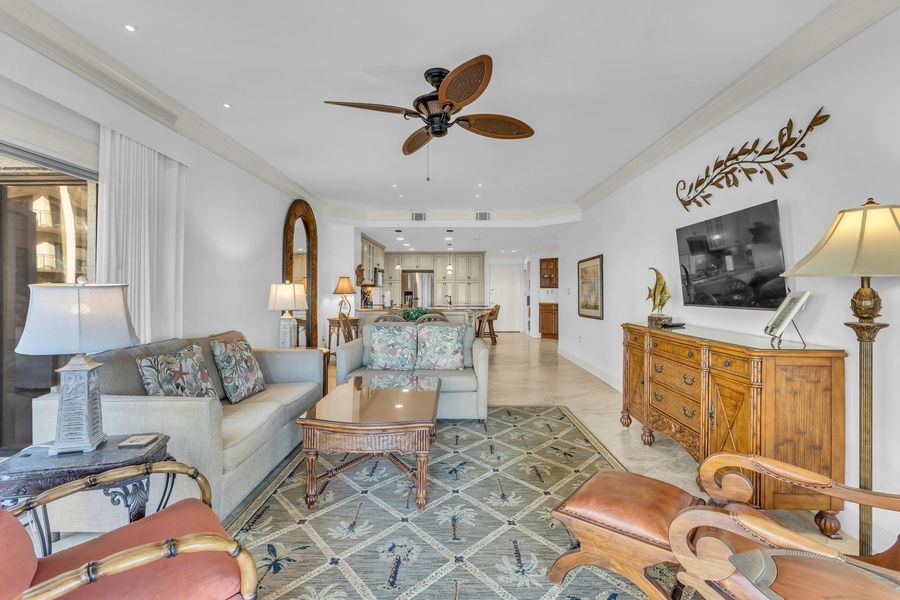 Located on the first floor of the exquisite Beachside Tennis complex, this beach style villa packs architectural interest and luxury around every corner, from the rich granite of its spacious kitchen to the elegant crown molding that runs throughout. Read a book from our full library or walk to the beach.