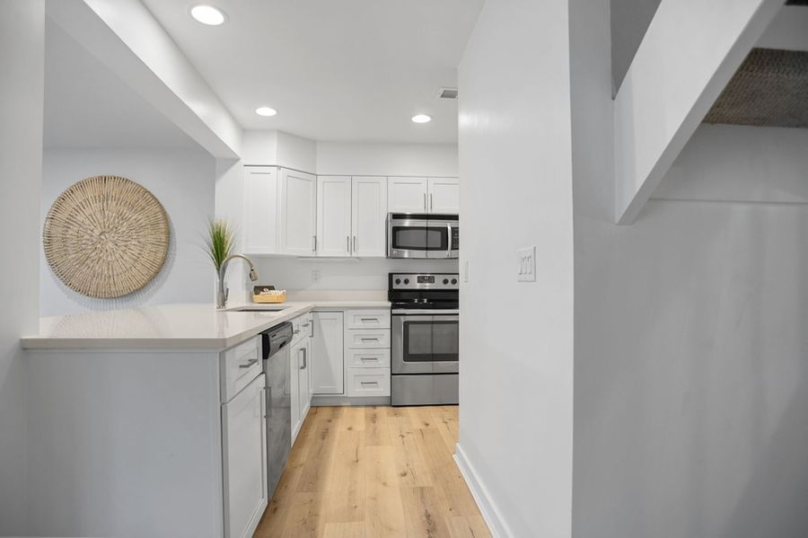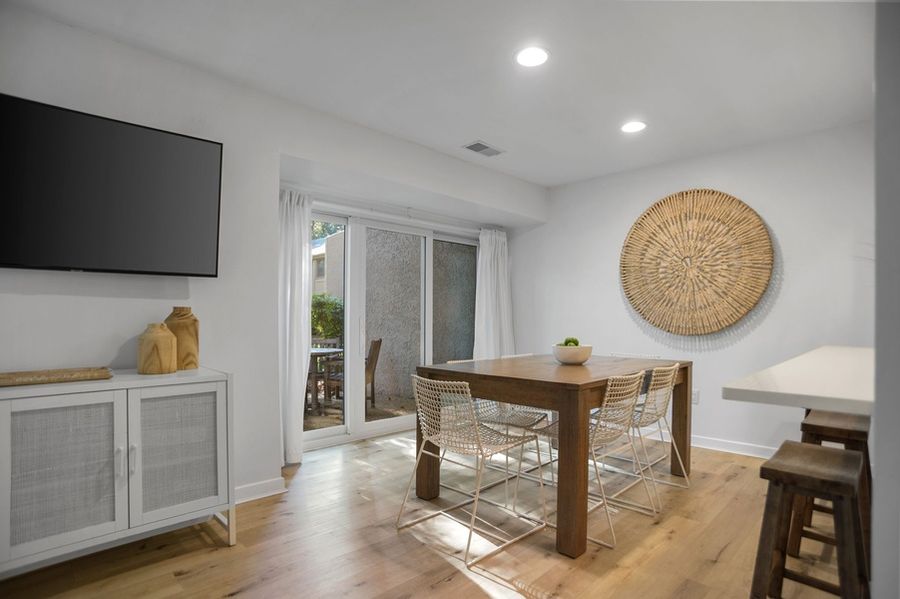 All new furnishings have been added to the living room, including a luxurious queen sleeper sofa, teak lounge chairs, and 55”4K UHD - Smart TV. Home entertainment choices include Spectrum’s premium TV package featuring over 300 channels and Spectrum Ultra high speed internet service with 100 Mbps.