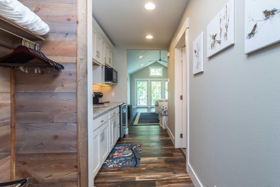 This upper level studio condo retreat has beautiful views of Gull Lake and can sleep up to 2 people. This unit features a private entrance with stairs, 1 queen bed, a balcony, Wi-Fi, AC/Heat, flat screen tv, bathroom with shower and kitchenette with a small refrigerator, toaster, coffee maker, microwave, sink counter and basic dishes.