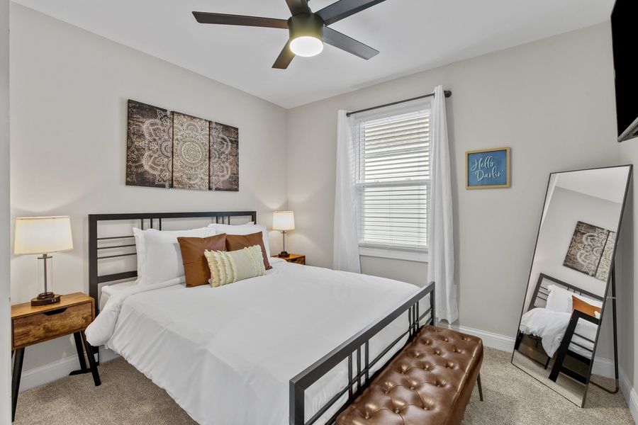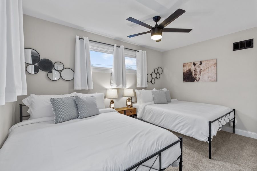 THE SPACE Layout: 4 Bedrooms | 2 Bathrooms Bedroom 1- 1 Queen Bed Bedroom 2 - 1 Full Bed Bedroom 3- 2 Queen Beds Bedroom 4 - 1 Full Bed ABOUT THE SPACE An unassuming facade hides a gorgeously reinvented home in a family neighborhood close to all conveniences. Located in historic Bevo Mill, you ll be within easy walking distance to many of the area s bars, restaurants, coffee shops, and Carondelet Park, which connects directly to the beloved 10-mile-long paved River Des Peres Greenway Trail. Enter directly into a large, bright living room. Impeccably furnished with coordinating shades of grey and blue and modern decor, you ll feel right at home on the sectional sofa or two side chairs. Cuddle up with friends and family to enjoy your favorite show on the flat-screen TV. Or perhaps you ll choose a low-tech evening with a board or card game. The open-concept living space segues effortlessly into the dining room for eight or the chef s kitchen. Amateur and experienced cooks alike will clamor for the use of this perfectly equipped space. With features including stainless steel appliances, crisp white cabinets, a vent hood, and a white subway-tile backsplash, it s easy to understand why! The oversized center island boasts seating for three and trendy pendant lights. With an abundance of cabinets and counter prep space, the kitchen will surely be the home s heart. With accommodations for up to 10, everyone can find a comfy space to claim as their own. The first floor of this spacious home has three bedrooms and a spacious bath. The first bedroom offers a rustic aesthetic. It has a queen-size bed, bench, wall-mounted TV, dual nightstands and lamps, and a ceiling fan. The second bedroom has whimsical cow-themed decor and is equipped with a double-size bed, dual nightstands and lamps, a wall-mounted TV, and a ceiling fan. The third bedroom boasts two queen-size beds, modern decor, dual nightstands and lamps, and a ceiling fan. A shared hall bath features a freshly tiled tub/shower. The lower level houses a second living space with an industrial-chic aesthetic. From the comfort of a cozy sofa, you can catch your favorite show or the big game on the flat-screen TV. Are you more in the mood for a friendly challenge? Take advantage of the air hockey table for a fun tournament with friends and family. The winner buys dinner! An additional bedroom is perfect for those seeking extra privacy. The plush double bed has a nightstand, lamp, and flat-screen TV, so you can enjoy a restful night s sleep. The second spacious bath is on the second level. It has an oversized walk-in shower with subway tile. It's easy to see that this spacious, modern home is the perfect home base for your adventures in St. Louis. We look forward to welcoming you! Would you like to take a 3D Virtual Tour of this home before you decide? Our website offers one! THE LOCATION Whether you are in town for family or friends, the St. Louis area has plenty to keep you busy. Your St. Louis home is in a prime location just minutes from all the best attractions! If you're traveling with kids, check out The City Museum. It's not quite what you would expect from a "museum" per se, but it has been voted a must-see destination in St. Louis. Let's not forget our most famous attraction here in The Gateway to the West. You will be a 17-minute drive to St. Louis Arch and downtown. Are you a baseball or hockey fan? Busch Stadium, the home of the St. Louis Cardinals, and Enterprise Center, the home of the 2019 Stanley Cup Champion St. Louis Blues, are both within a 15-minute drive from this home. Be sure to catch a game because St. Louis has some awesome sports fans! Maybe you're looking for a romantic night out? Be sure to check out The Hill for great Italian food. If you prefer to stay closer to the property, check out Pepper's Bar & Grill, located just .6 miles down the road. Or one of the 15 restaurants within walking distance. Lastly, for the outdoorsy person, Forest Park, just 15 minutes away, has a little bit of everything! Dine at the boathouse, rent paddleboards, get a tee time at The Forest Park Golf Course, and see some animals at the Saint Louis Zoo! This is the largest city park in the country (yes, it's larger than Central Park in NYC), so there is plenty to explore. Within walking distance, we recommend Up Down, a brand-new arcade bar, or head over to El Burro Loco for fajitas and margaritas! Afterward, don't forget to stop by Jeni's Splendid Ice Cream for dessert before settling into your vacation home. PET FRIENDLY POLICY We also welcome pets as part of the family, but to maintain cleanliness and comfort for all guests, we implement a pet fee of $75 per stay. Guests must notify us in advance if they plan to bring a pet; a maximum of two pets are allowed per rental unit. Pet owners are responsible for any damages caused by their pets, and adherence to pet-related house rules, such as leash requirements and waste disposal guidelines, is required. By booking with us and bringing a pet, guests agree to comply with these terms. If you have any questions, feel free to contact us. THE JZ DIFFERENCE At JZ Vacation Rentals, we strive to provide an exceptional experience to every guest who walks through our doors. All properties managed by us undergo a 150-point Guest Standards inspection to ensure brand consistency and comfort across our entire inventory. The last thing we want is for you to have to run straight to the store when you first arrive. We offer 24/7 guest support and utilize smart technology to ensure you will be walking into a safe and clean home. Each home is provided with the following: -- A fully stocked kitchen (crockpot, toaster, coffee, dishwasher, microwave, and stove) - Pack and Play and high chair for those traveling with children - Washer and dryer, laundry detergent, iron, and ironing board - Toilet paper and paper towels - Shampoo, hairdryer, make-up wipes - Dishwasher soap, dishwashing liquid LOCAL BOOKING POLICY To ensur