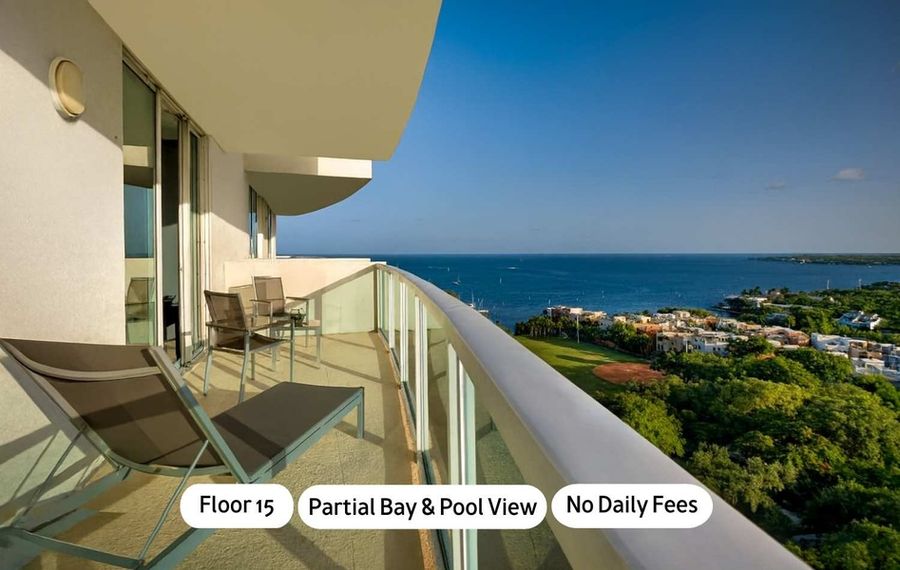 Outdoor pool and hot tub on the 8th floor overlooking the bay
