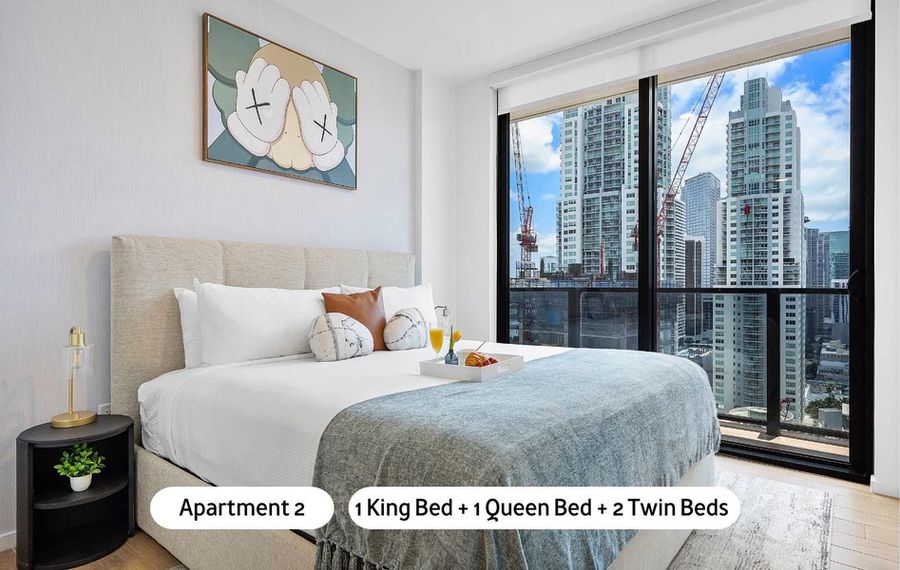 This rare Miami setup gives your group two spacious 3-bedroom apartments on the same floor, directly across from each other — so everyone enjoys their own bedrooms and living space, while staying just steps apart.