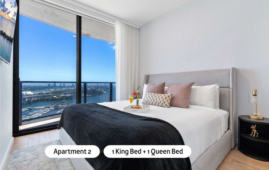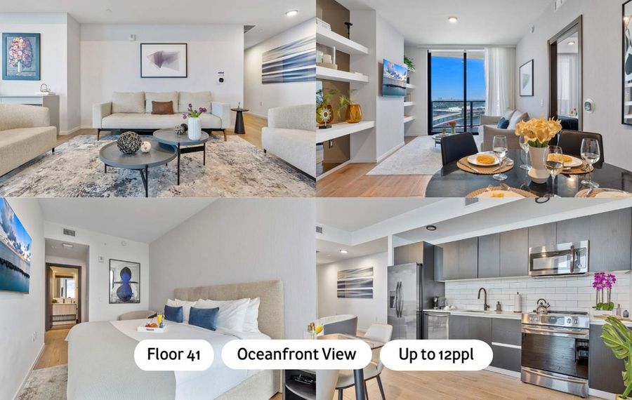 This rare Miami setup gives your group two spacious 2-bedroom apartments on the same floor, directly across from each other — both with stunning oceanfront views. Everyone gets their own bedrooms and living space, while staying just steps apart.