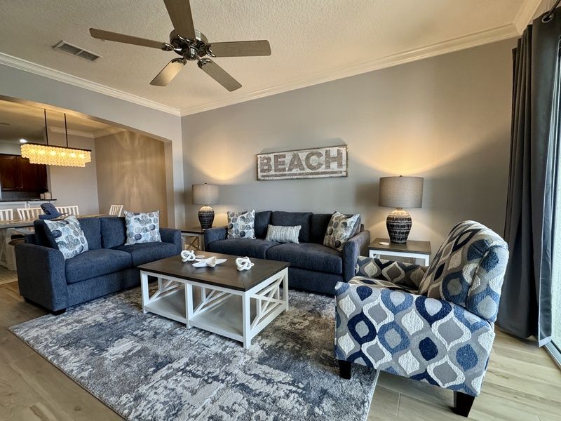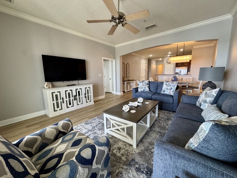 Step onto the covered balcony and take in the beauty of the surrounding area—a perfect spot for morning coffee, evening cocktails, or simply unwinding with a good book. After a full day of sightseeing, adventuring or swimming, relax in the inviting living room and enjoy a favorite show or movie on the flat-screen TV. The fully equipped kitchen features granite countertops and all the appliances you’ll need to prepare anything from quick snacks to gourmet meals. The adjoining dining area provides a more formal option for family gatherings. Beyond the condo, enjoy a day at the Cinnamon Beach pool and play area, or take a short drive to Hammock Beach Golf Resort & Spa for endless recreation. Ride bikes along scenic trails, challenge the family to a round of putt-putt, or make a splash at the water pavilion. Adults can indulge in golf, tennis, or a rejuvenating spa treatment while kids join in the fun of the Kid’s Crew. At day’s end, retreat to three well-appointed bedrooms—two with king beds and one with twin beds. The condo offers two bathrooms for comfort and convenience, and each bedroom includes a flat-screen TV. With Wi-Fi throughout, staying connected is easy. This condo is designed to make every moment of your getaway relaxing, fun, and memorable.