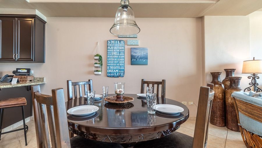 We are in Las Palomas in the Diamante building, which is one of the few oceanfront buildings. We are on the 7th floor, unit 704. Our fully stocked condo has the fastest wireless internet on Sandy Beach, 3 flat screen TV's, complete kitchen, ocean views from our beautiful 7th floor private patio with complete patio furniture, washer, dryer, dishwasher, filtered drinking water, underground parking, 24 hour gate-guarded security, fitness center, infinity-edge pools with a waterslide and lazy rivers, a kiddie pool, jacuzzis, pool bars, a white sand beach, seaside gardens, and “The Links”, a championship par 72, 18-hole links style golf course contoured around the dunes and sparkling sea.