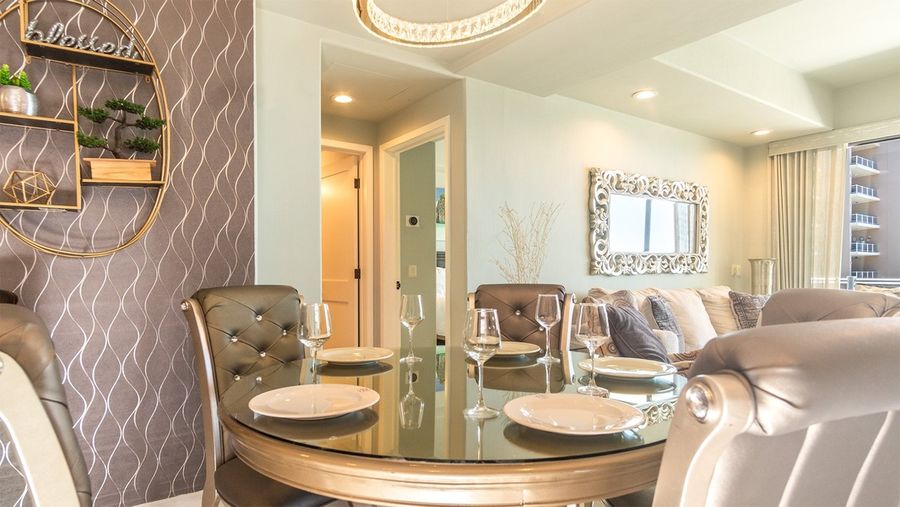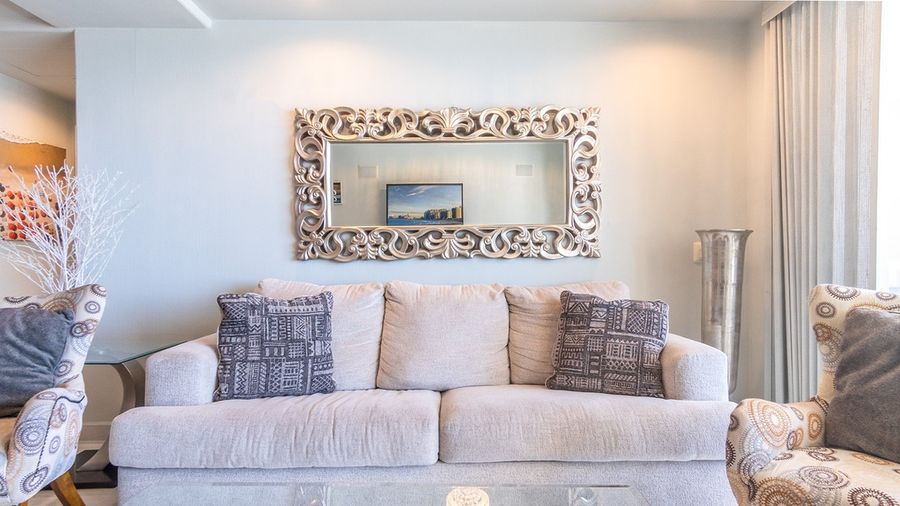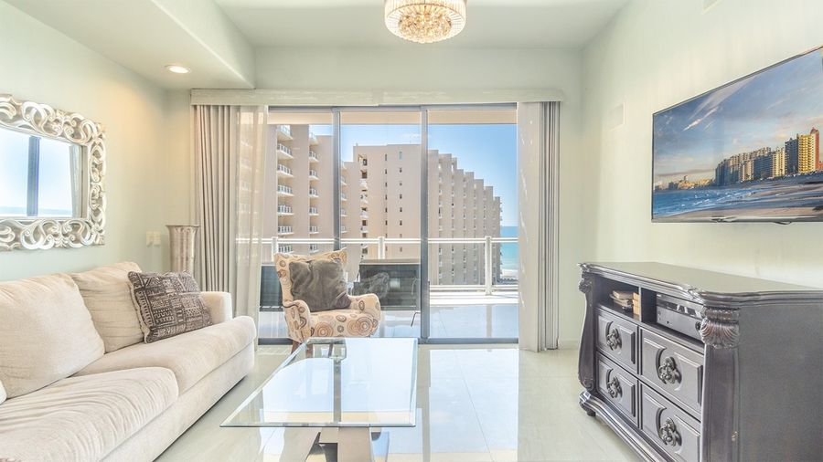 Opalo 601 A condominium that strive to present luxurious touches throughout its floor plan. The spacious, well furnished balcony is a standout feature. The condo sleeps 9 people in comfort, with a master bedroom with a king bed . a second bedroom with a Queen, and a unique third bedroom with a twin over double sized bunk bed. There is also a nice memory foam Queen sleeper sofa in the living room.