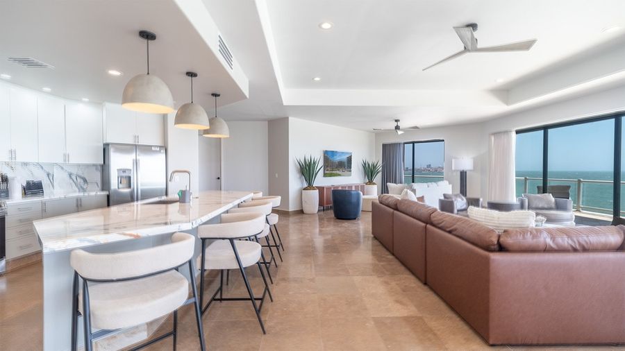 Right above the waves, this four-bedroom condominium puts you in the front row for the best Rocky Point beach experience. The awe-inspiring main room is unequaled for luxury, defined by floor-to-ceiling windows that open onto the wrap-around oceanfront balcony. With one of the largest balconies at Las Palomas Beach and Golf Resort, your vistas extend to a near 180-degree view towards the sea. If you enjoy people-watching, your vantage point lets you see it all.