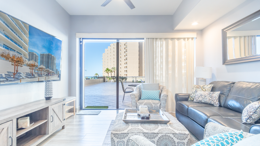 Ground floor three bedroom, two bath privately owned condominium at Las Palomas Beach & Golf Resort. Topaz 101 Enjoy ocean breezes from the well furnished, and spacious patio.