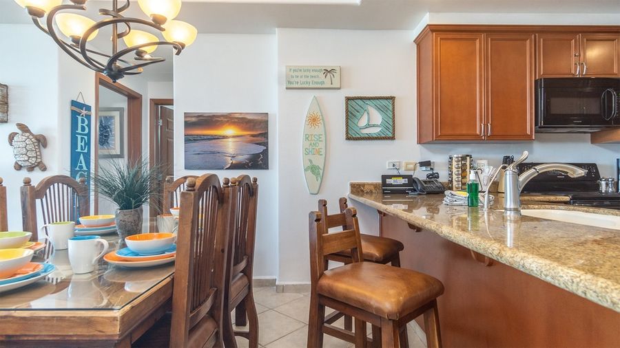Enjoy exceptional views in a condominium closet by the beach, bringing appareled beach vibes! Two bedrooms with King beds, and elegant granite tiled bathrooms with enclosed bath tubs, showers, and vanities. Excellent large kitchen that is stylish, fully complimented with appliances and cookware, along with a washer and dryer,.