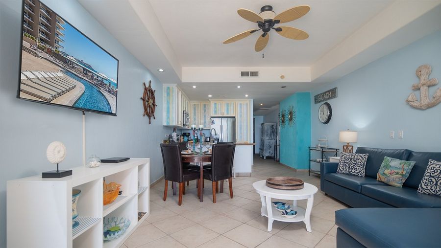 Charming one-bedroom condominium at the Las Palomas Beach and Golf Resort in Rubi Tower. Excellent location with main phase one Resort lobby and La Maria Restaurant down the street. There is also a gym with extensive resistance and aerobic machines to enjoy. It is a great condo for up to four guests. The living room sofa turns into a bed.