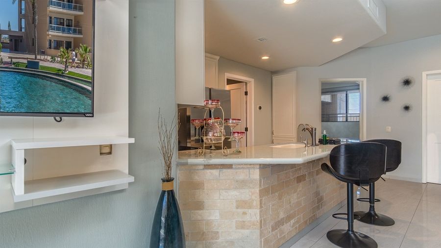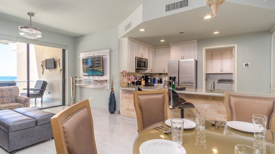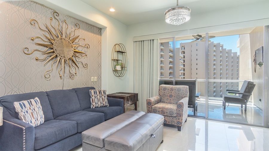 Located in the Opalo Tower of Las Palomas Beach and Golf Resort. This is a one bedroom, complete condominium of uncommon style with lots of elegant details throughout. This condo comfortably sleeps 5 guests. The living room has a memory foam queen sofa sleeper and an individual ottoman bed.