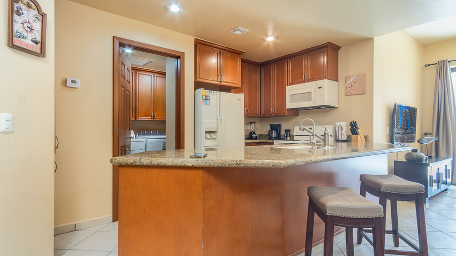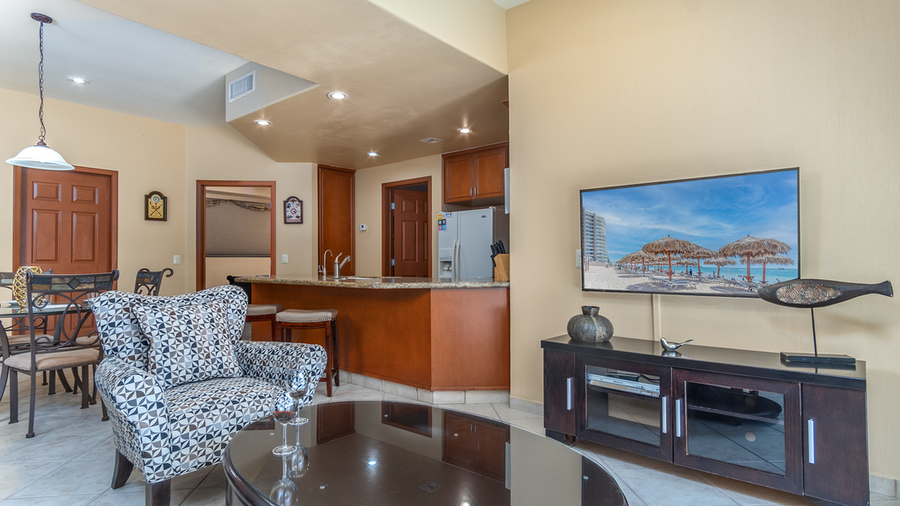 Topaz 402 is a one bedroom privately owned condominium at Las Palomas Beach and Golf Resort closet to Sandy Beach. Excellent on site amenities and easy access to fun activities lik ejet skies, off road vehicles, and sunset cruises. The condominium is comfortable and complete, with a great kitchen, living room , and ctranquil bedroom.