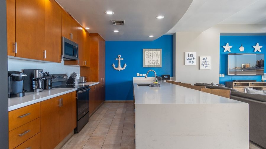 Cortez 507 the perfect beach getaway spot for your whole family. Offering multiple balconies, two bedroom suites with King beds and bathroom soaking tubs, and a third bedroom with a Queen over King bunk bed. The spacious living room space includes a grand kitchen, and large sofa sleeper.