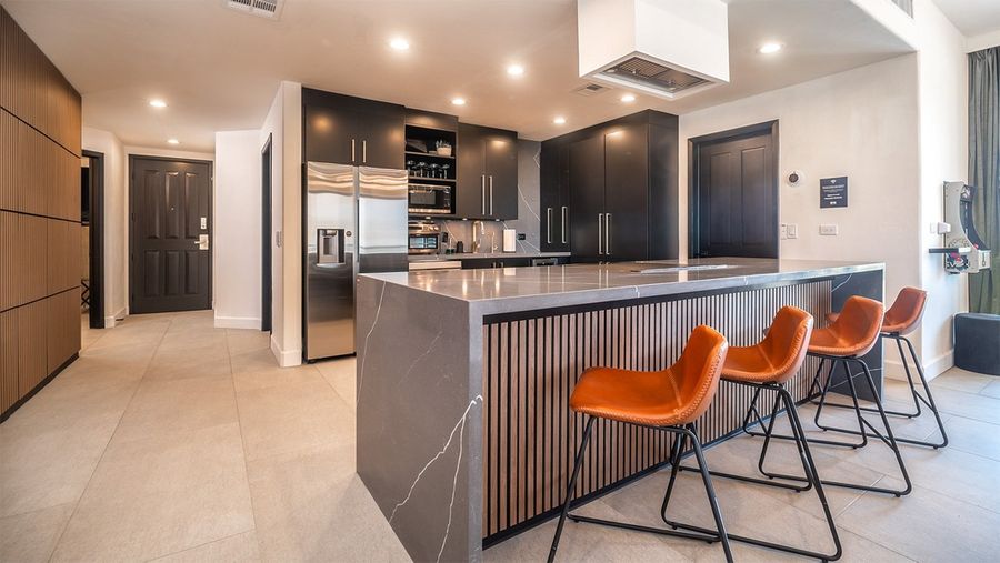 Rubi 208, Las Palomas Beach and Golf Resort Experience exceptional elegance in this one of a kind end unit condominium at Las Palomas Beach and Golf Resort. With lots of details you won't find in another condominiums, number 208 in the Rubi Tower will raise your expectations for a Rocky Point getaway. The basic layout of Rubi 208 welcomes you into the main room with its complete kitchen, dining area, stylish living room, and two sliding glass accesses to the wrap around balcony. From here you encounter a master bedroom with an attached bathroom and its own balcony access. Off of the kitchen is a utility room with a sink, washer and dryer, and and shelves filled with fun games. The guest bedroom has two double beds and its bathroom is off of the hallway. Bedroom three is truly special, as its in-suite design combines the bedroom, elegant bathroom, and complete bar area as well. Rubi 208 at a glance . . . - Master bedroom with a comfortable king sized bed, balcony access, walk-in closet, writing desk, wireless speakers, and an attached bathroom. The bathroom is tiled in fine granite, and offers a shower, separate bathtub, and double sink vanity. - The guest bedroom presents two full sized beds, TV, dresser, and attached bathroom with vanity and shower that is accessible from the hall. - The third bedroom offers maximum seclusion with an elegant full bar with refrigerator in this lock off master bedroom. - There is a king sized bed, TV, dresser, and a private balcony that overlooks the Resort's Golf Course. The bathroom has a garden bathtub with a large window view, along with a separate shower and double sink mirror topped vanity. - The living room centers around a large L shaped, comfortable sofa. There is a a large TV, as well as a drop down projection screen. - Attractive electric fireplace. - Spotting scope on a tripod for checking out the nearby beach! - Seat six at the Restoration Hardware dining table. This area has its own sofa, and sliding glass door access to the balcony with Golf Course views. The Kitchen - Enjoy the five star kitchen with its black cabinetry, and 10 foot long kitchen Island. - Leather raised seats at the kitchen Island. - Top of the line appliances throughout - Separate room with washer, dryer, and sink. Here you will find a selection of fun board games and boogie boards as well. - Slide out dedicated to the coffee maker. - Wine refrigerator - Induction cooktop for instant heat - Drinkable water and ice The Balcony - The spacious balcony wraps around the living room, featuring vistas over the Resort grounds to the beach, as well as the Golf Course. - Furnished with two sofas, one a comfortable sectional sofa, a grand dining table, and two TV's! Las Palomas Beach and Golf Resort - Rubi 208 is found in the main building of phase one. Off of the lobby is popular La Maria Restaurant, and a complete gymnasium as well. -Las Palomas Beach and Golf Resort is right on Rocky Points Sandy Beach. - With the highly rated Golf Course, two great restaurants, the Resort stand out with its complete array of desired amenities. Two Swim Up Bars Beach Cabanas with Bar Service Fiber Optic Internet Heated Pools and Jacuzzis Spa Lazy River Water Slide Pool for Children Fitness Center Convenience Store Conference Room Facilities Underground Parking 18 Hole Links Golf Course w/ Clubhouse La Maria Restaurant Citron Restaurant Security Deposit Policy: There is a damage security deposit of 300 USD during Semana Santa/Easter Weekend and Spring Break (from March through April 10th), and 200 USD for the rest of the year. The deposit can be left in cash or by credit card at the time of arrival. Please note that credit card deposits incur a 3% processing fee. Casago - Rocky Point has engaged VacayHome to ensure this listing contains all the information you need and that it is easy for you to book via search engines & online channels. VacayHome is connected directly to the property management system used by Casago - Rocky Point which ensures that availability & rates are up-to-date & accurate. When you book, VacayHome processes payment on behalf of Casago - Rocky Point and a charge will appear on your statement as "VacayHome". VacayHome will send you a confirmation e-mail that contains all the information you need to prepare for your vacation including arrival instructions. VacayHome has a 24 x 7 team to assist you with any questions or concerns you may have prior to arrival. To access VacayHome, obtain the customer support telephone number or read FAQs, please click on the links at the bottom of this page.