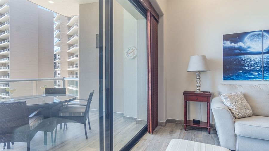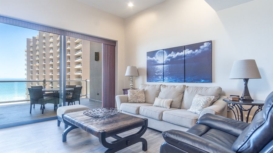 Well-appointed two-bedroom, two-bathroom unit that welcomes you to a comfortable and classic space to enjoy your weekend at Las Palomas Beach and Golf Resort. The main bedroom has a king bed, walk-in closet, dresser, TV, and attached full bathroom. The balcony can be accessed via sliding glass doors. Bedroom two has a dresser, closet, TV, and a King bed. The kitchen is large and has bar stools at the countertop, and the dining accepts six. Inside, you'll find a spacious and beautifully appointed living area with a sofa sleeper with a queen memory foam