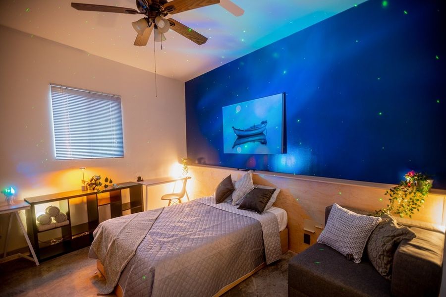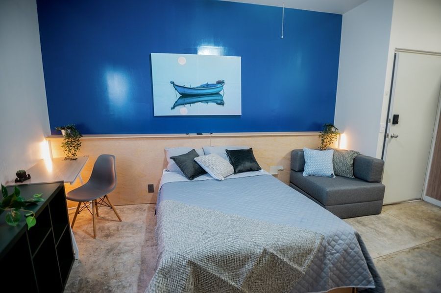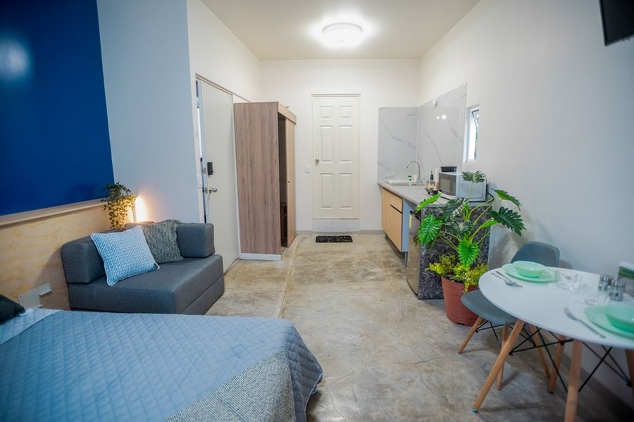This modern studio has been carefully designed to provide comfort and functionality for up to three guests. It features a comfortable full-size bed, a fully equipped kitchenette with essential utensils, a private bathroom, ceiling fan, Smart TV, high-speed Wi-Fi, and street parking.