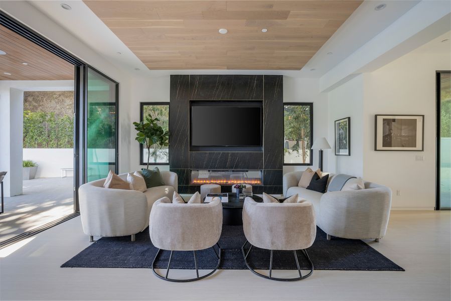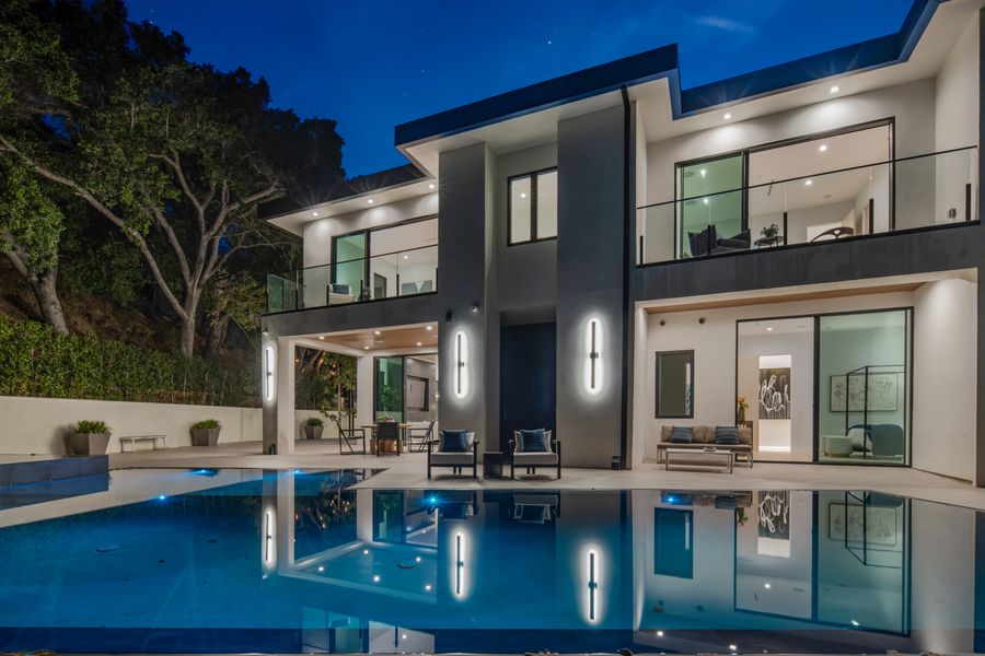 Experience unparalleled modern luxury in this jaw-dropping new construction estate located in the breathtaking Encino hills. Step inside to find an expertly curated interior with wide plank wood flooring, sweeping mountain views, and glass sliders opening to several outdoor lounge areas. A modern chef's kitchen has it all including a seated island with marble waterfall countertops and glass sliders opening to the covered outdoor dining area. Unwind in the formal living room, socialize in the indoor/outdoor family room, or screen films in the theater - this home embodies the true L.A. lifestyle. A spacious primary suite with dressing room, private balcony, and resort inspired bath provides an optimal space for relaxation. Outside you'll find the sprawling grounds with outdoor kitchen and infinity pool with Jacuzzi. Just minutes from the upmarket offerings of both Encino and West Hollywood, this captivating home offers the pinnacle of luxury in one of L.A.'s most serene hilltop environments.