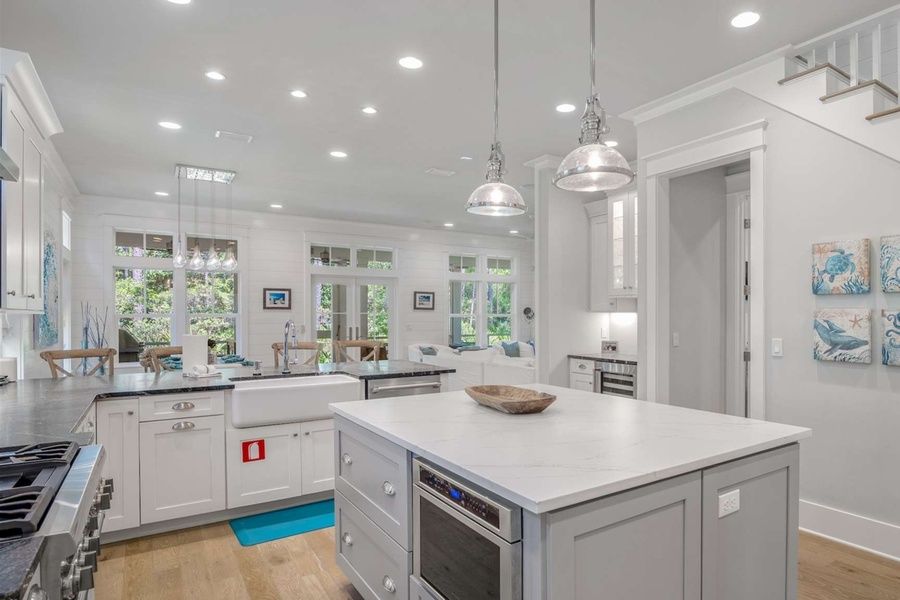 Sea D’Light is a beautifully designed 3-bedroom + bunk area, 3.5-bathroom beach retreat that sleeps 10 in the gated community of Watersound West Beach. This stunning home offers the perfect blend of comfort and coastal charm with bright, open living spaces and elegant finishes throughout. The fully equipped kitchen features stainless steel appliances, an island breakfast bar, and plenty of room for family meals and entertaining.
