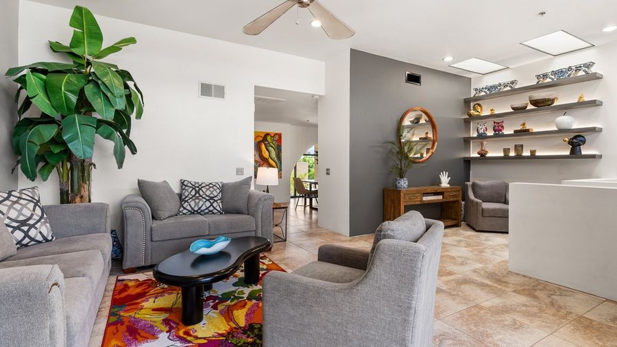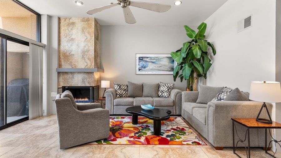 NEW RELAXED CANCELLATION POLICY!! PS CITY ID #068704 Step into the spirit of Old Hollywood with this spectacular split-level condo perfectly situated between Old Las Palmas and The Movie Colony. Offering 2,000 square feet of sleek, modern comfort and panoramic mountain and city views, this stunning home embodies Palm Springs' signature blend of glamour and relaxation. Highlights • Expansive 2,000 sq. ft. luxury condo with open floor plan • Gorgeous mountain and city views from the front deck • Located on the famous Palm Springs Celebrity Home Tour route • Fully equipped chef's kitchen and spacious living area • Spa-inspired primary suite with soaking tub and large walk-in closet • Prime Uptown location — walk to fine dining, shopping, and nightlife • Pool/Spa area is a naturalist retreat - meaning nude only The Space Hollywood Cinema Masterpiece combines classic Palm Springs style with modern sophistication. This airy one-bedroom executive condo offers a bright, open-concept design filled with natural light. The living room features contemporary furnishings, bold art, and direct access to the front deck, where guests can take in breathtaking views of Mt. San Jacinto. The updated kitchen includes premium stainless-steel appliances, sleek countertops, and ample space for meal prep and entertaining. The split-level layout allows for seamless flow between the living, dining, and kitchen spaces, creating the ideal environment for relaxation or hosting guests. Sleeping Arrangements • Primary Suite: King bed, spa-like en-suite bathroom with soaking tub and shower, large walk-in closet, and private sitting area Outdoor Living Guests can enjoy two distinct outdoor spaces — a front deck perfect for morning coffee or al fresco dining with a view, and a private back patio ideal for quiet lounging under the desert sky. Community Amenities This adult-oriented community offers a relaxed and inclusive atmosphere where guests can fully unwind. The shared pool and spa area cater to a carefree, sun-soaked Palm Springs lifestyle, welcoming those who appreciate a more open and laid-back environment. The home's south-side location provides privacy and convenience, with direct street access for guests who prefer a traditional stay. Location Located in the heart of Uptown Palm Springs, this home is surrounded by the charm and history of Old Hollywood. Walk to renowned restaurants like Sandfish and 1501 Gastropub, explore boutique shopping, or enjoy nightlife just steps away. The Palm Springs Celebrity Home Tour passes right outside your door, and the new Thompson Hotel and downtown corridor are only a short stroll away. Utility Surcharge For stays of 28 nights or longer starting June 1st and ending September 30th, a $500/month utility surcharge will apply to help cover the additional energy costs associated with cooling the home during the summer heat. This is NOT included in the amount being paid at the time of booking. It will be requested prior to your arrival. Additional Policies & Rules • No outdoor music. Doors must be closed if playing music within the house. • 100% quiet hours outside from 10pm-10am • No smoking inside home • Renter must be 25+ and no children are permitted in the community • Sorry, not Pet Friendly ($500 fine will be assessed for bringing any pets into this property) • Guests will sign a Ryson "Terms and Conditions" form and City Ordinances require a copy of your ID to Ryson prior to the day of your arrival. Ryson Vacations has engaged VacayHome to ensure this listing contains all the information you need and that it is easy for you to book via search engines & online channels. VacayHome is connected directly to the property management system used by Ryson Vacations which ensures that availability & rates are up-to-date & accurate. When you book, VacayHome processes payment on behalf of Ryson Vacations and a charge will appear on your statement as "VacayHome". VacayHome will send you a confirmation e-mail that contains all the information you need to prepare for your vacation including arrival instructions. VacayHome has a 24 x 7 team to assist you with any questions or concerns you may have prior to arrival. To access VacayHome, obtain the customer support telephone number or read FAQs, please click on the links at the bottom of this page.