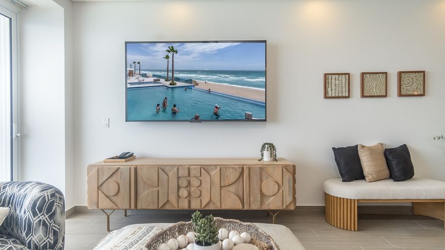 ~Two suite style bedrooms, each with its own bathroom, shower, and vanity. Each has king sized beds, walk-in closets, wall mounted TV, and beach side balcony access.