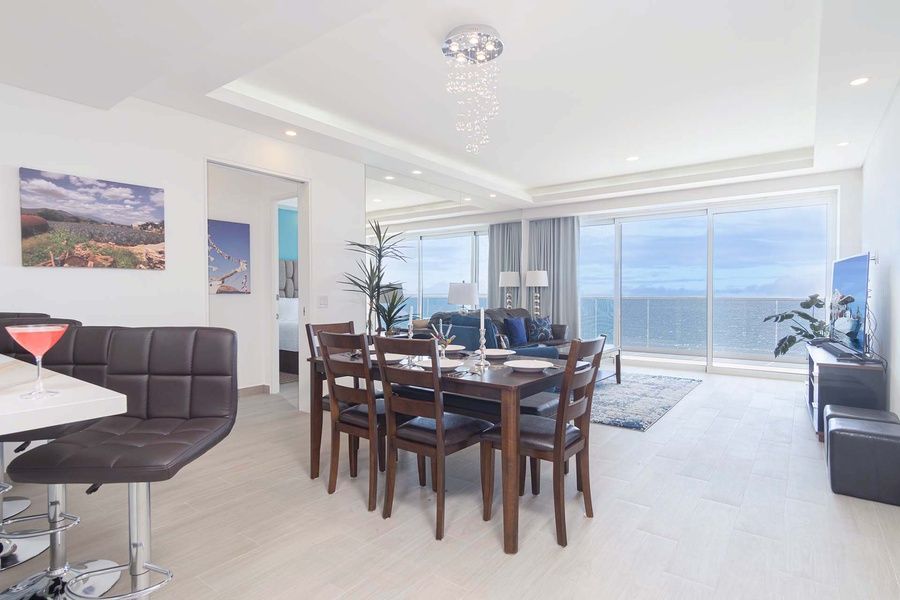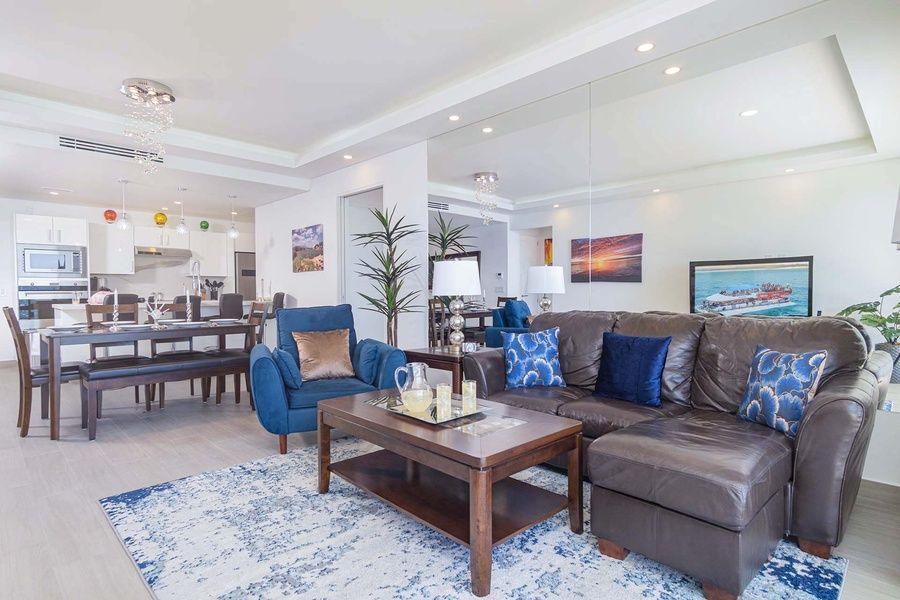 Sleek and elegant, this two bedroom condo soars above the pools sandy shore below. The large terrace will find you sipping Margaritas on the chaise lounge. Or sharing your days catch with close friends at sundown.