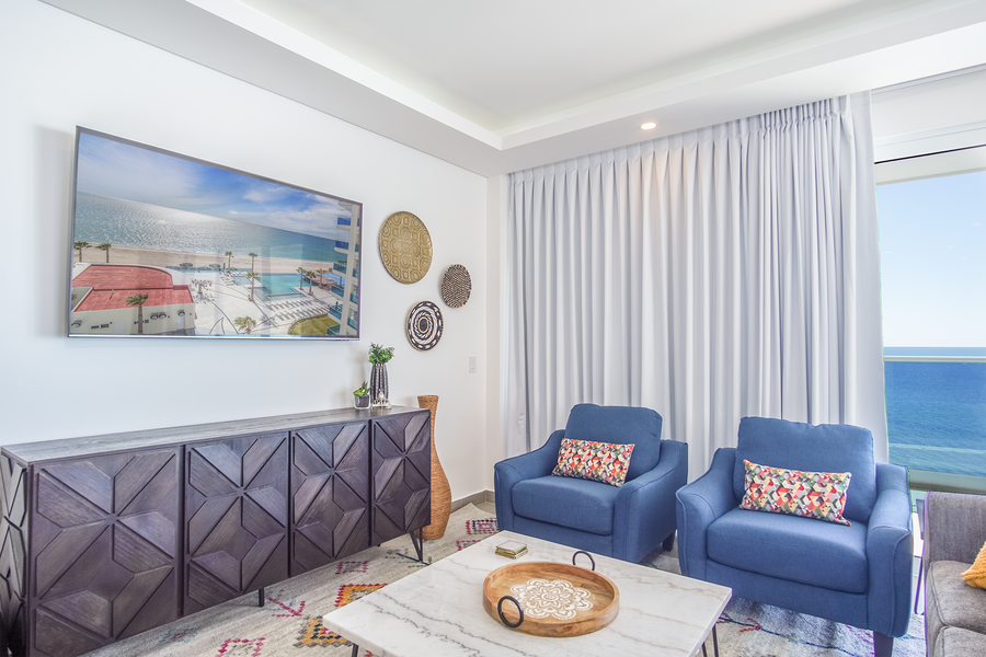 Excellent end unit two bedroom condominium in new Verano Tower of Rocky Points newest Resort, Encantame Towers.