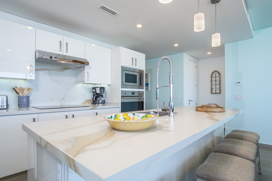 Want an exceptional place to practice being a Master Chef? The kitchen is complete with brand new, modern appliances, all dinnerware and needed cookware as well is found here. The over sized kitchen island is the perfect spot for meal prep, and with comfortable stools, it is a scene stealing spot to sit and relax with friends!