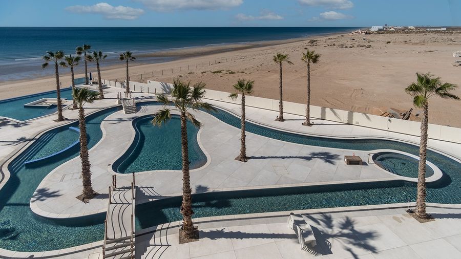 - Two large negative edge pools at the center of the Resort, set along the edge of the beach.