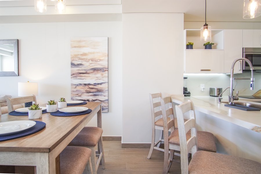 Encantame 503, in the Verano Tower, is an exceptional choice for a one bedroom beach getaway in Rocky Point. In fact, Encantame Towers, the towns newest Resort, is actually just outside of the city limits, and makes the most of its less crowded beach location.