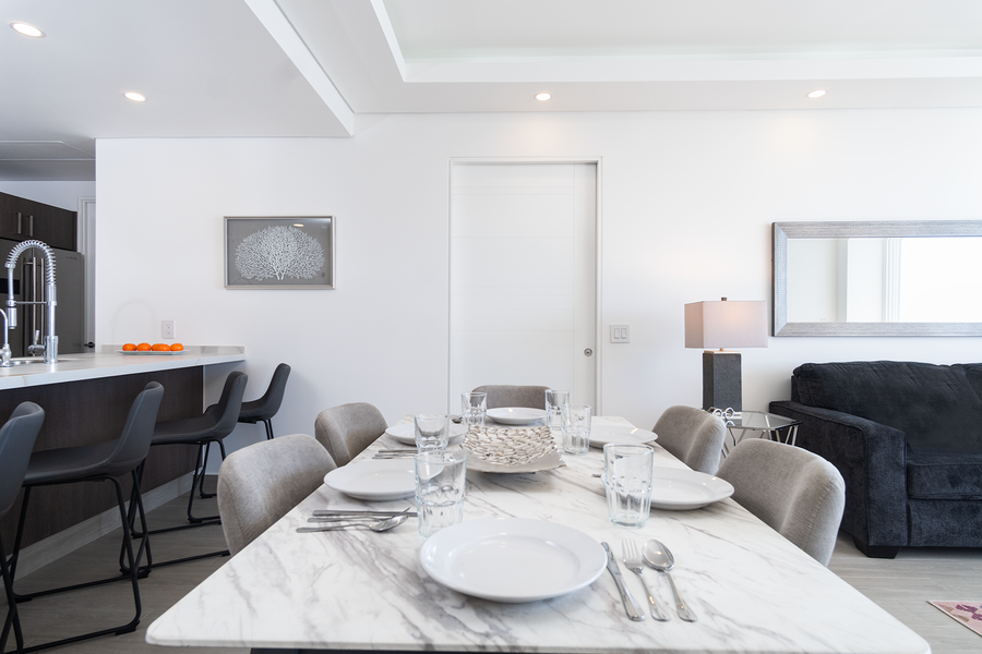Exquisite 2 bedroom perched high above the grounds of Rocky Points newest destination Resort, Encantame Towers. Designed with a contemporary palette, this elegant condominium exudes luxury and comfort.