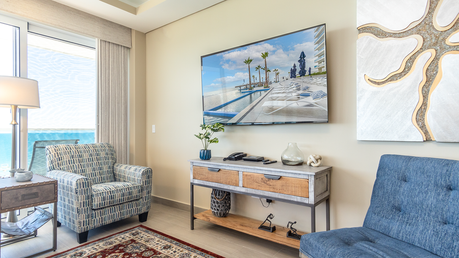 Encantame Towers Resort offers two grand pools around the central aqua bar. Santo Coyote Restaurant offers creative cuisine to you from Guadalajara. Centered in the pools is a swim-up bar, always the place for great fun. In the lobby, you will find Blue Palm Cafe, serving authentic Starbucks coffee service, and an incredible gym up above it all.